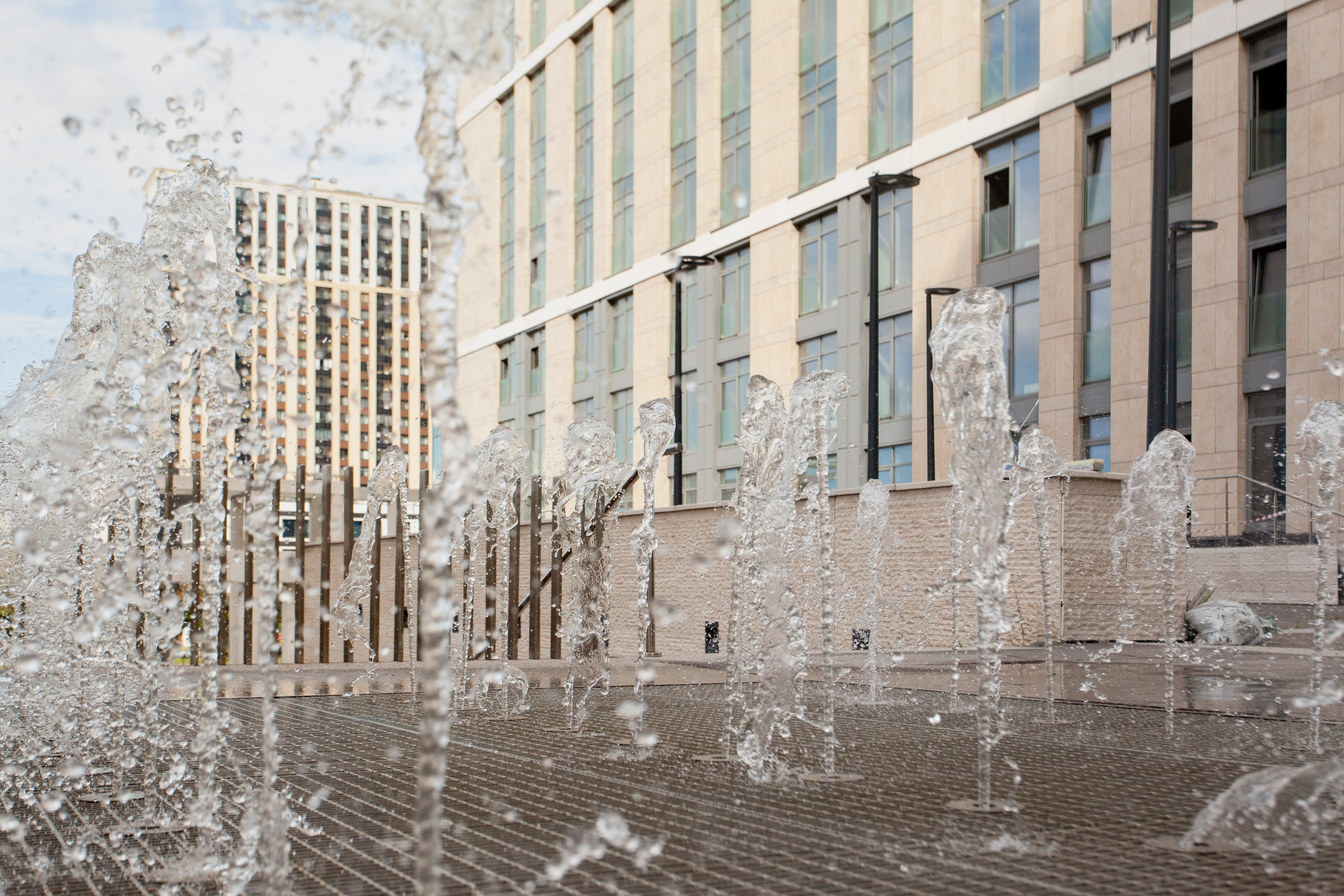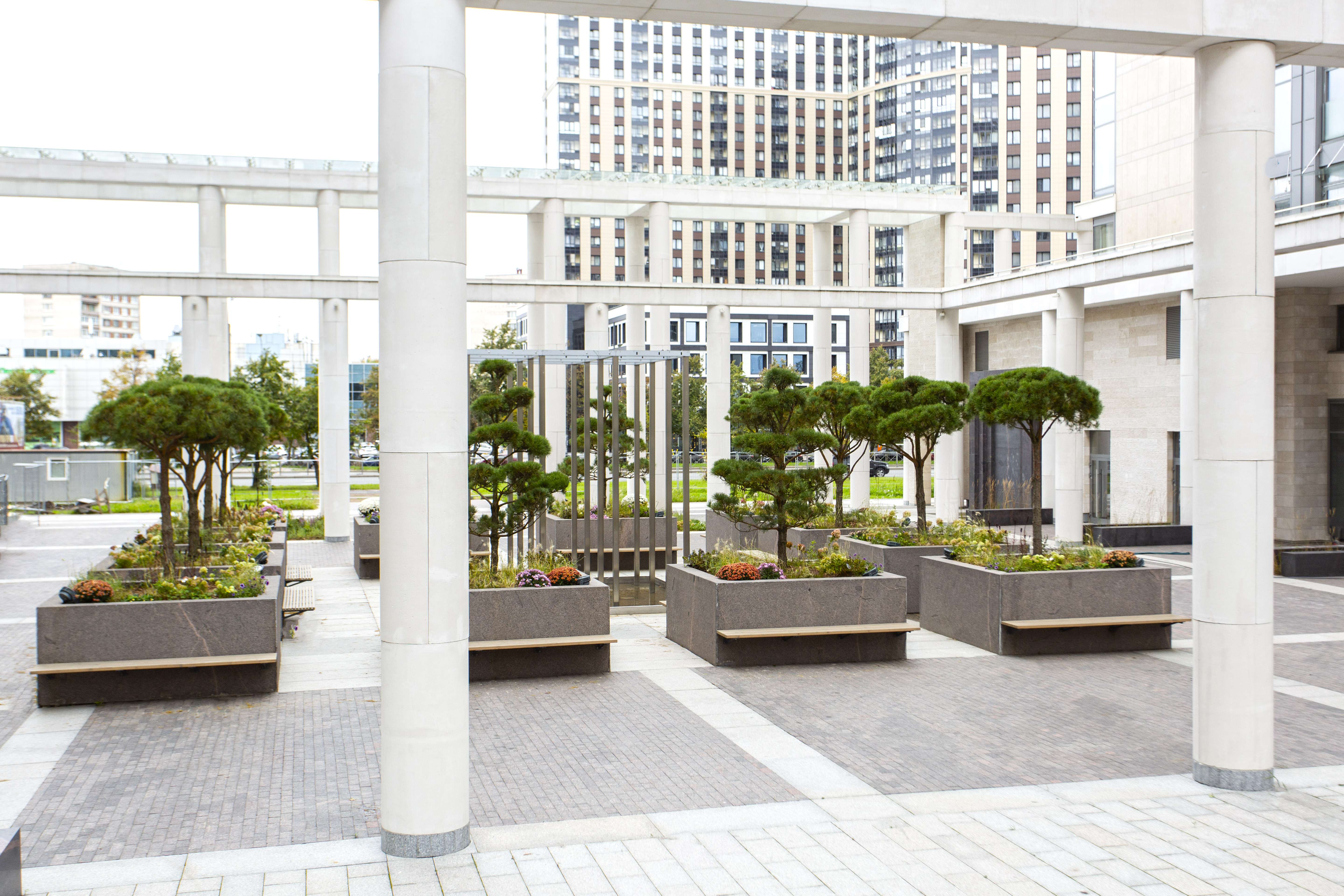 • двор поднят на 9,7 метров от уровня земли. Резиденты ЖК «Дефанс Премиум» смогут попасть сюда по широкой парадной лестнице с фонтаном.