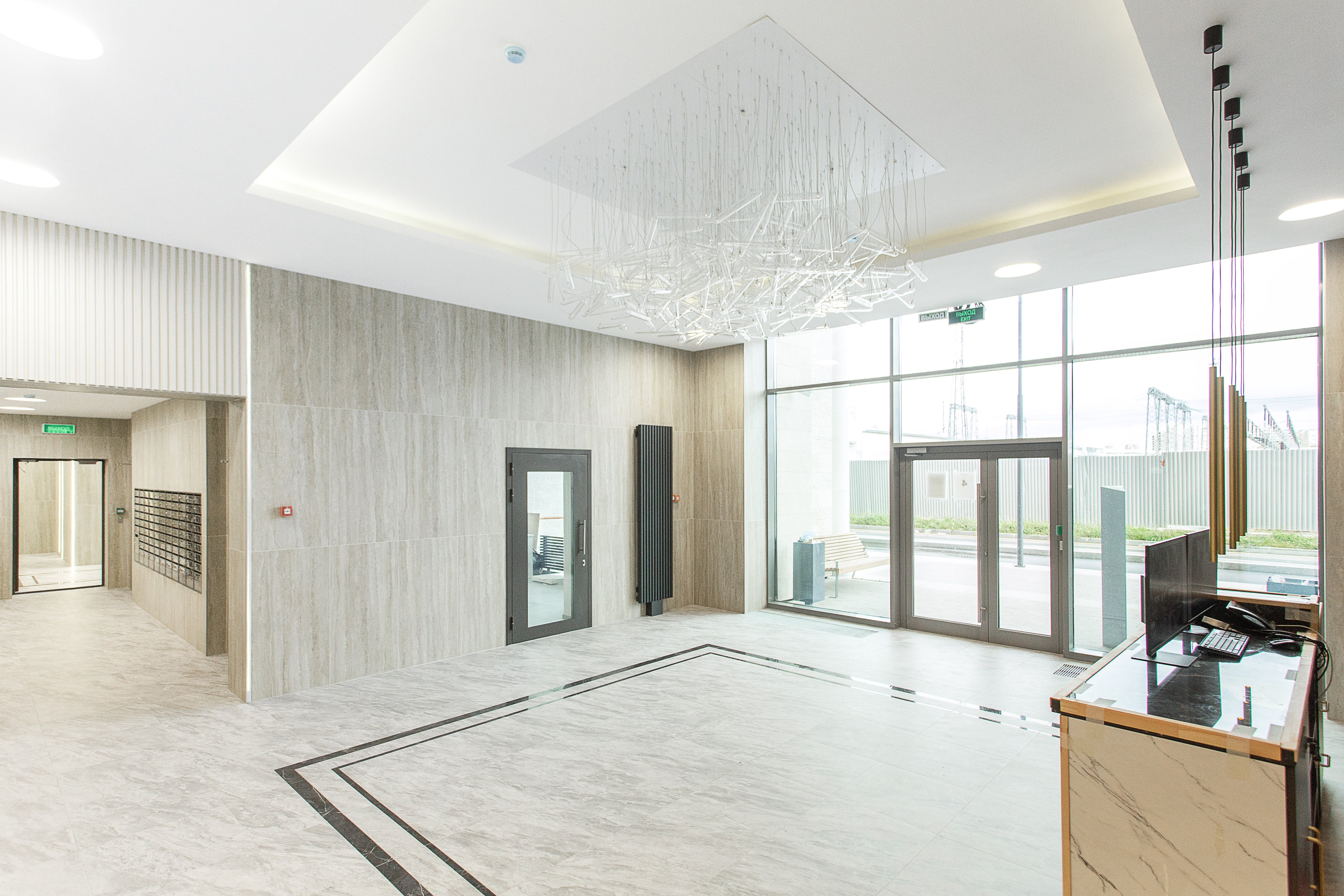 • в холлах первого этажа с дизайнерской мебелью и отделкой оборудованы удобные зоны ожидания и ресепшен