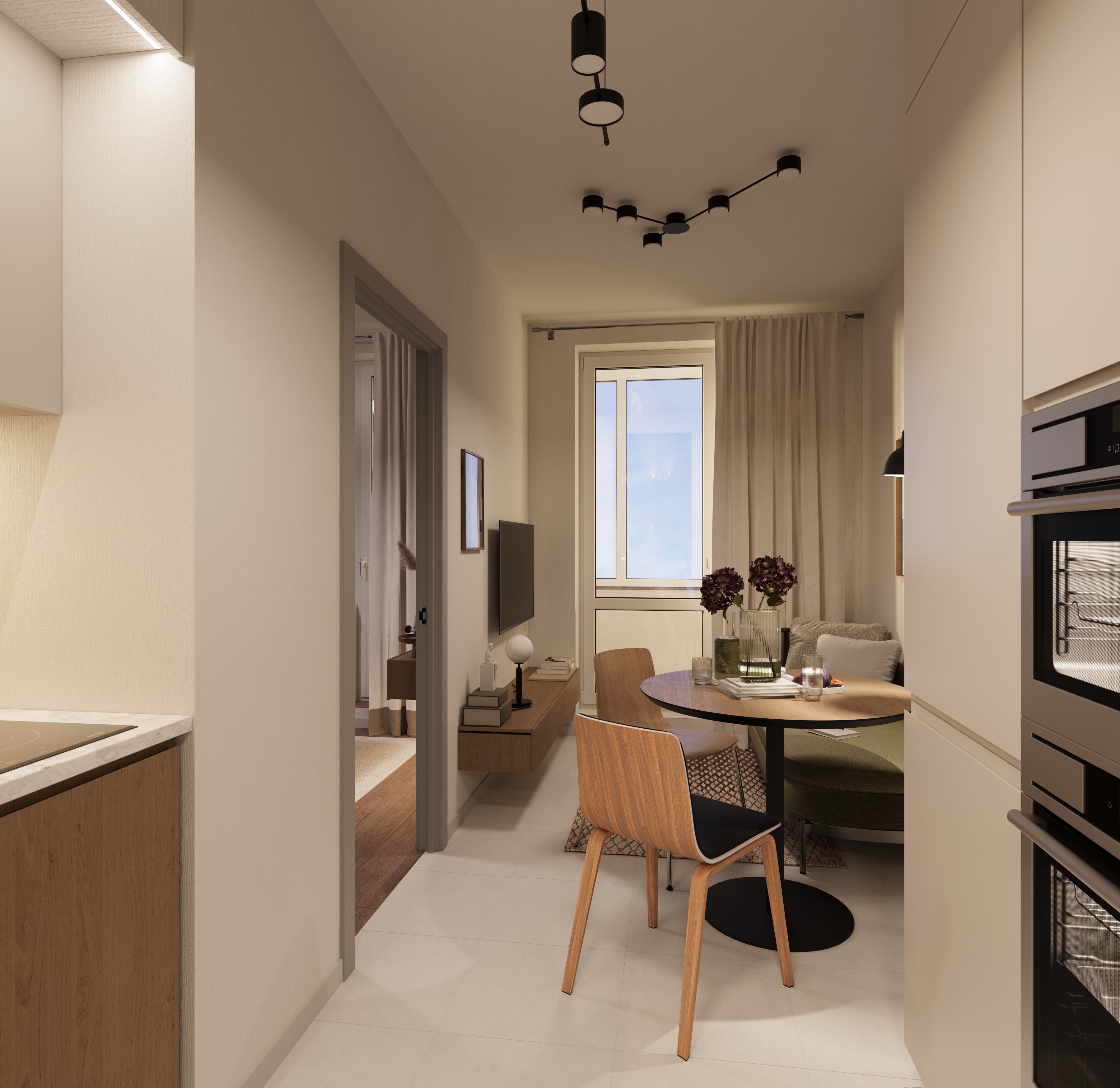 Европланировки с просторными кухнями‐гостиными, двумя ванными комнатами, мастер‐спальнями и лоджиями — оптимальный вариант для комфортной жизни современной петербургской семьи. Студии в «ИСКРА‐Сити» также представлены, но они занимают не более четверти от всего объема квартир.