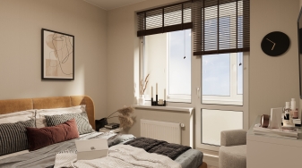 В некоторых квартирах предусмотрено угловое остекление, причем, сразу в нескольких спальнях. В большинстве планировок очень просторные балконы — более 6 м².