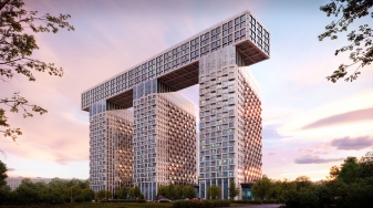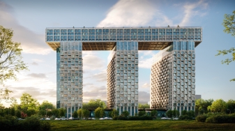 «ТРИАРТ Резиденс» восхищает и удивляет с первого взгляда! Облик проекта разработан знаменитым петербургским архитектурным бюро «Студия 44». Дом спроектирован по принципу горизонтального небоскрёба. Три волнообразно расположенных дома‐башни, служат опорой для гигантского небесного моста, поднятого на высоту более 70 метров.
