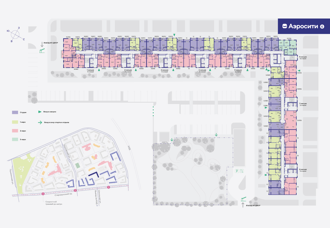 Адрес: ЖК Аэросити 5, Санкт‐Петербург, п. Шушары, Старорусский проспект, дом 3, корпус 2, строение 1 (см. схему ниже).