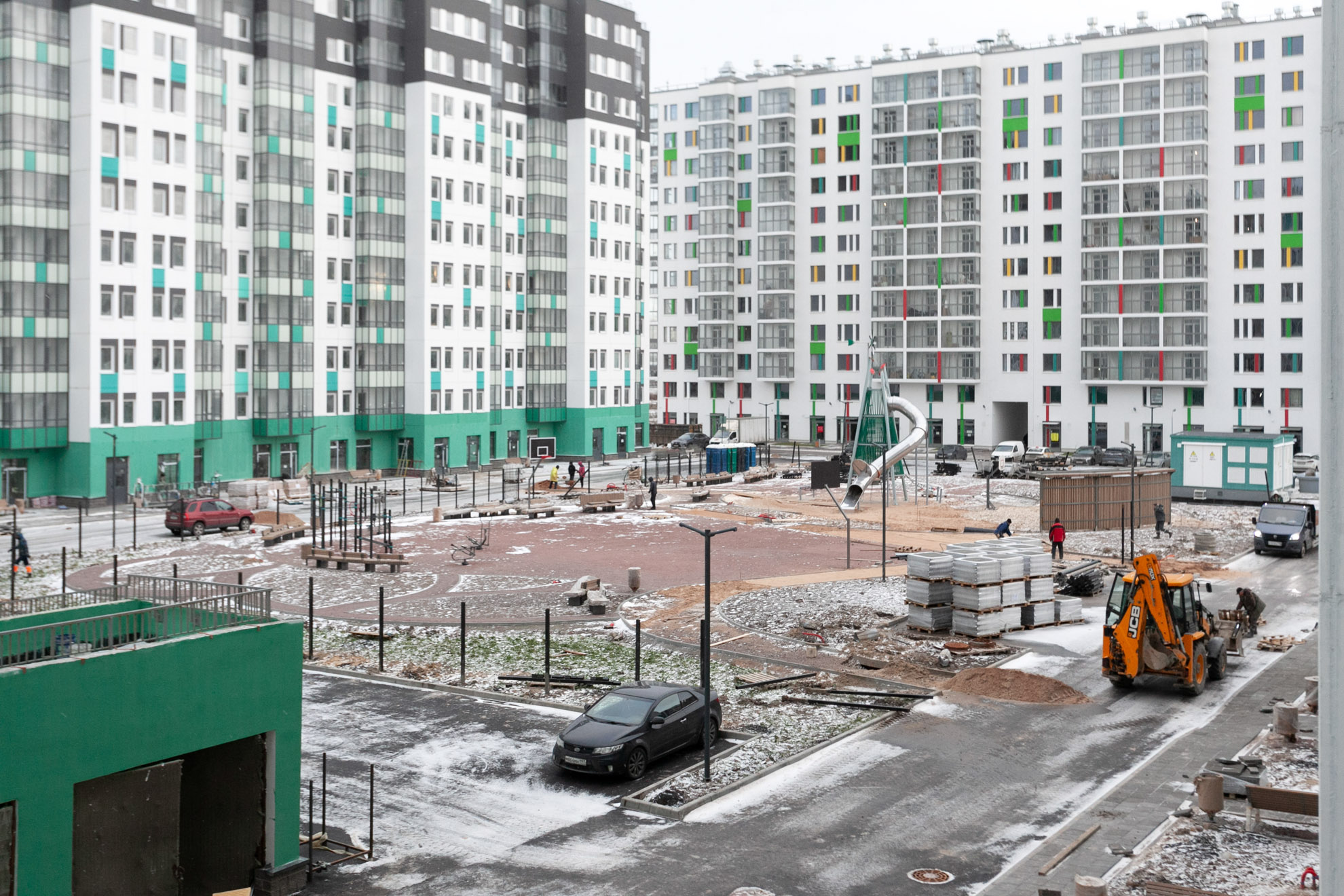 В рамках работ по благоустройству, выполнено асфальтирование внутридворовых проездов, укладка тротуарной плитки, идет монтаж ограждения территории, завершается установка оборудования детской и спортивной площадок.