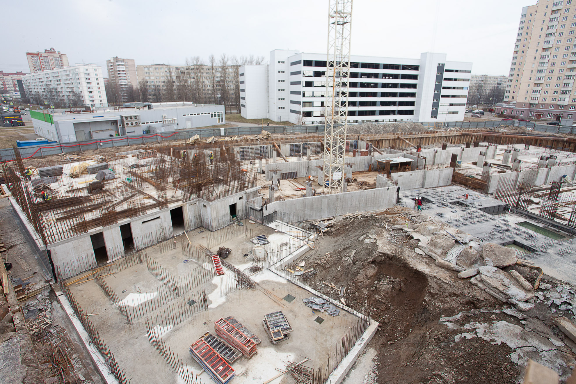 В шестой секции произведен демонтаж распорной системы ограждения котлована. Бетонирование стен подвала выполнено на 70%, перекрытие над подвалом — на 40%.