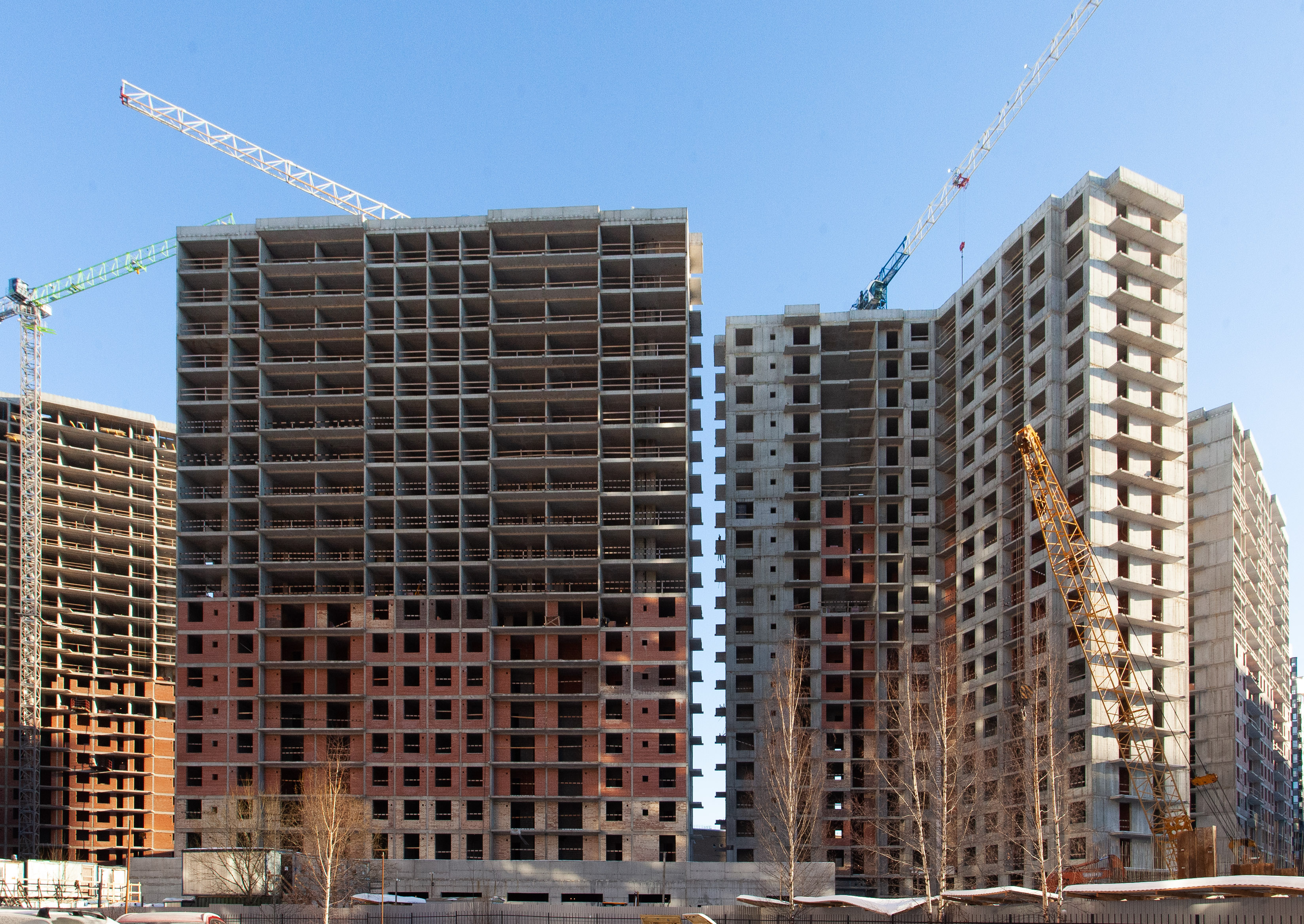 В первой секции продолжается устройство кровли, во второй — в работе перекрытие над 22‐м этажом.