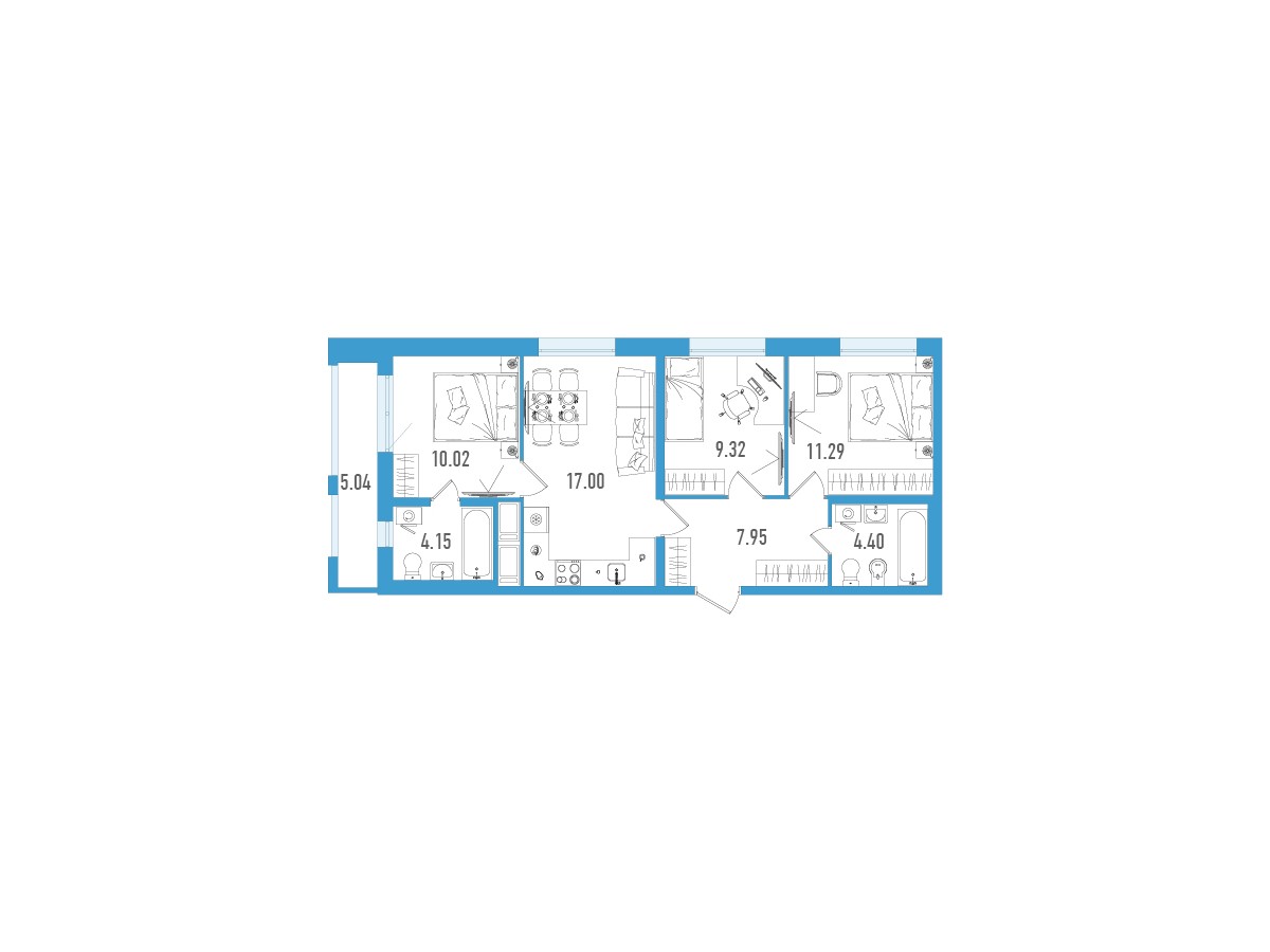 Семейный квартал в Петербурге | 3‐Евро 69,38 м2 с выгодой 2 428 300 руб.